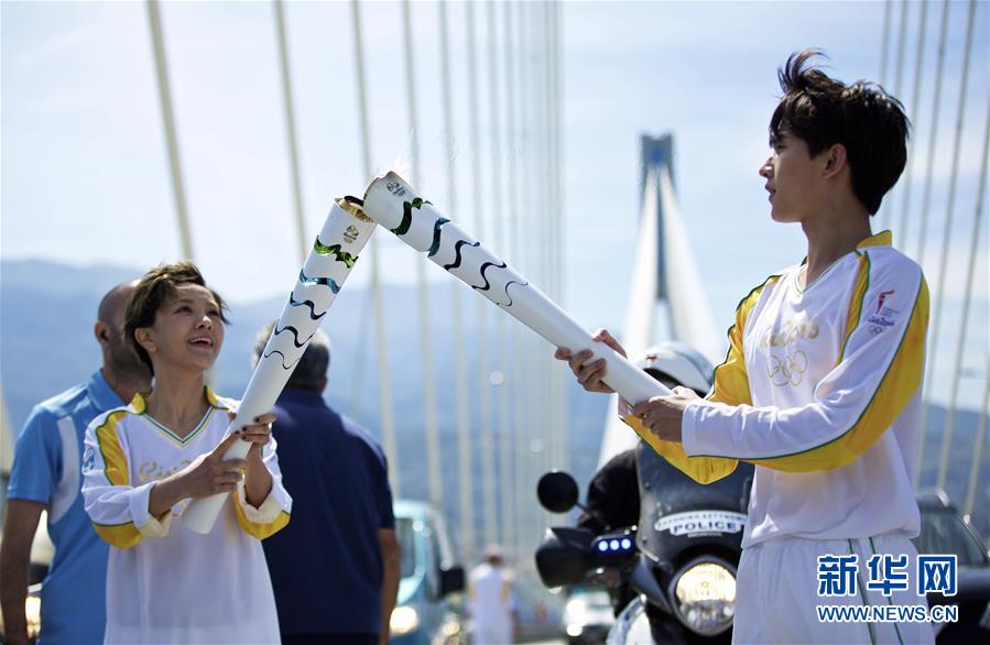 中国火炬手在希腊传递火炬
